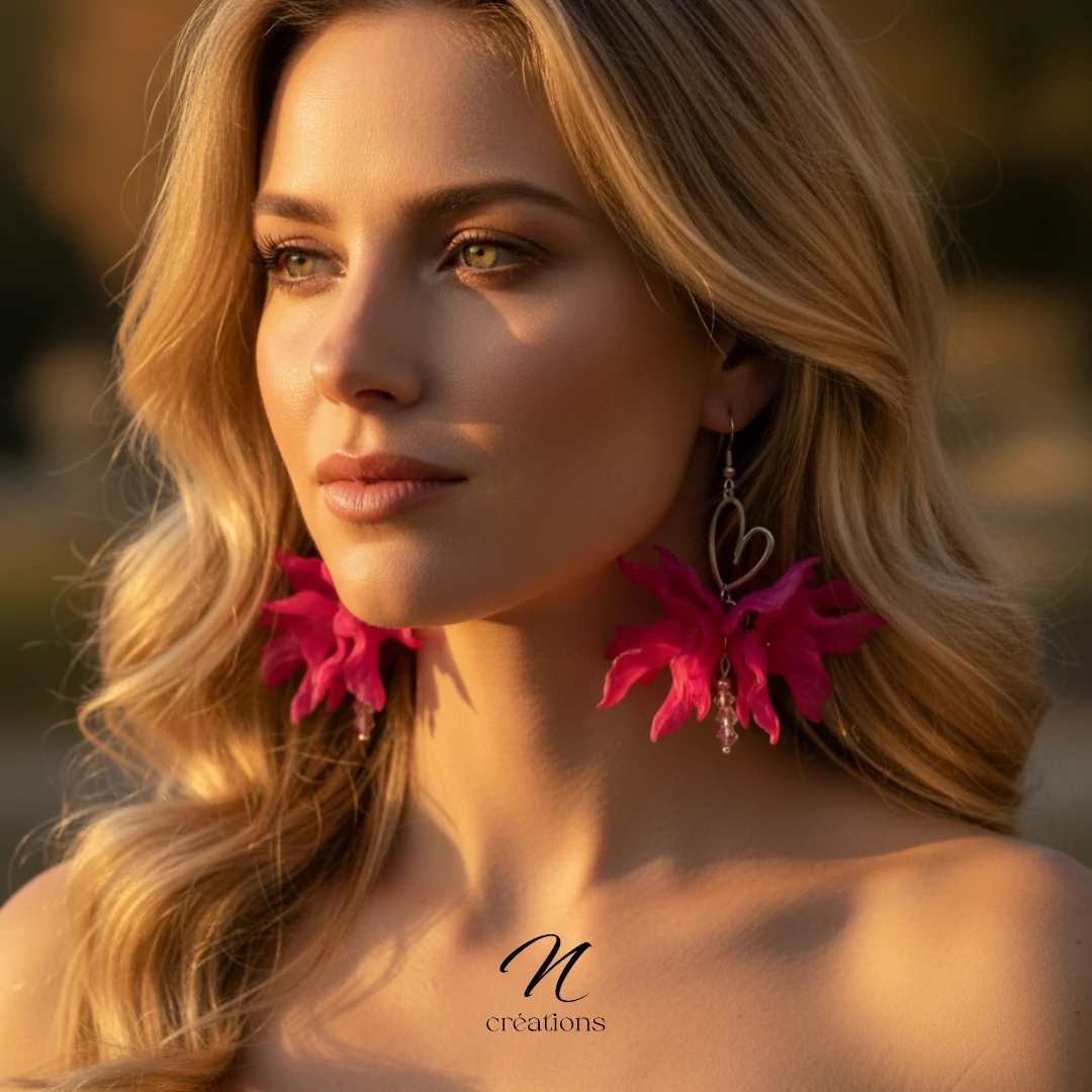 • Boucles d'oreilles Orchidées Fuchsia Or 24K