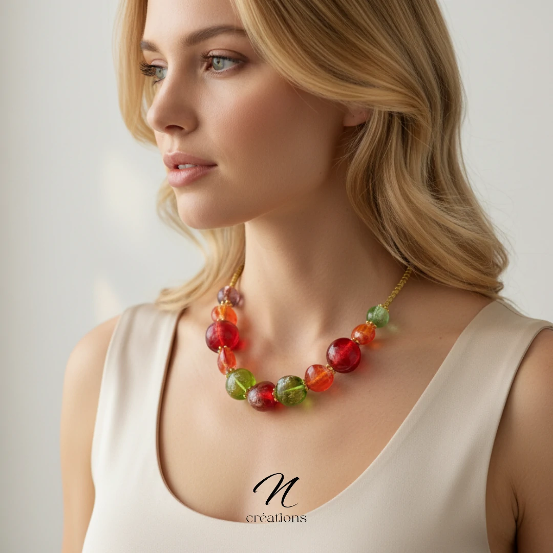 Un bijou lumineux aux reflets uniques : Collier en verre Murano irisé